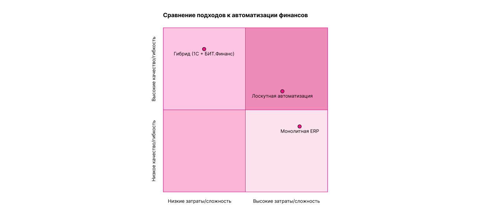 Особенно это касается финансового блока. Модули бюджетирования, казначейства, управленческого учета и МСФО в больших ERP часто являются данью традиции, а не передовым инструментом для финансового директора. Они могут быть сложны в настройке и недостаточно гибки для быстро меняющихся условий.
